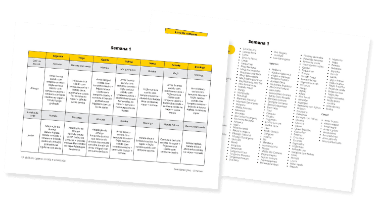 Tenha sempre em mãos mais de 90 cardápios semanais para bebês de 6 meses a 2 anos com lista de substituição e lista de compra, seja ele APLV, Alérgico a Ovo, Vegetariano, Ovolactovegetariano ou Sem Restrições. Todos 100% editáveis.